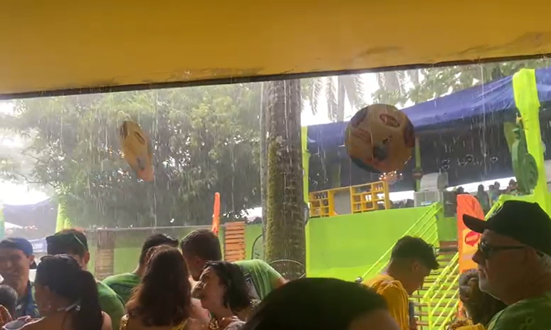 Algumas pessoas buscaram abrigo em toldos espalhados pela avenida. Por outro lado, houve também quem não se preocupasse com a água e seguiu se divertindo com os trios elétricos, como notou a reportagem do Terra, que acompanha o bloco.
