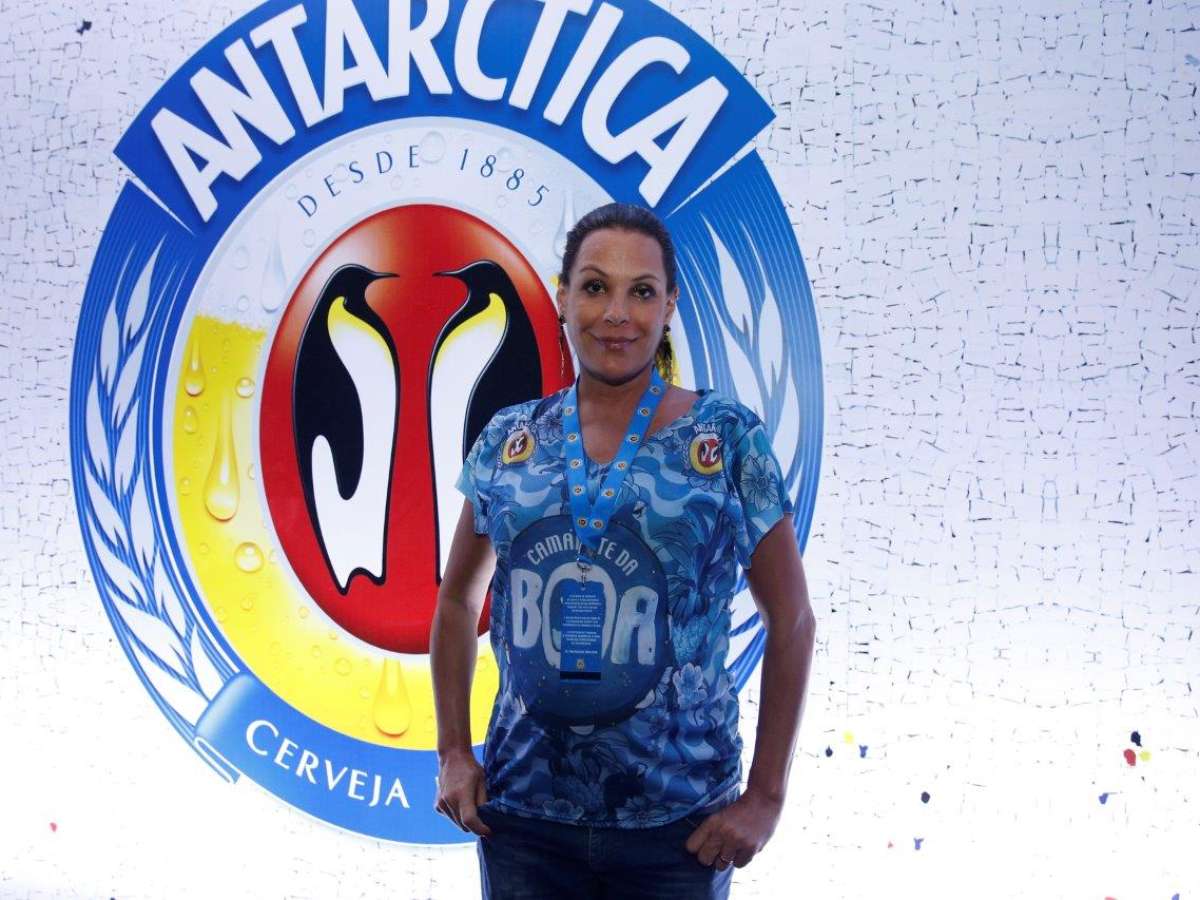 Carolina Ferraz foi à Marquês de Sapucaí acompanhada pelo marido, o médico Marcelo Marins. Ela disse que decidiu ir em cima da hora, porque torce pela Mangueira e descobriu que vários amigos desfilariam na escola.