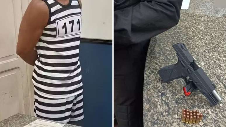 Homem fantasiado de presidiário dispara pistola e é preso pela Polícia Militar; entenda o caso