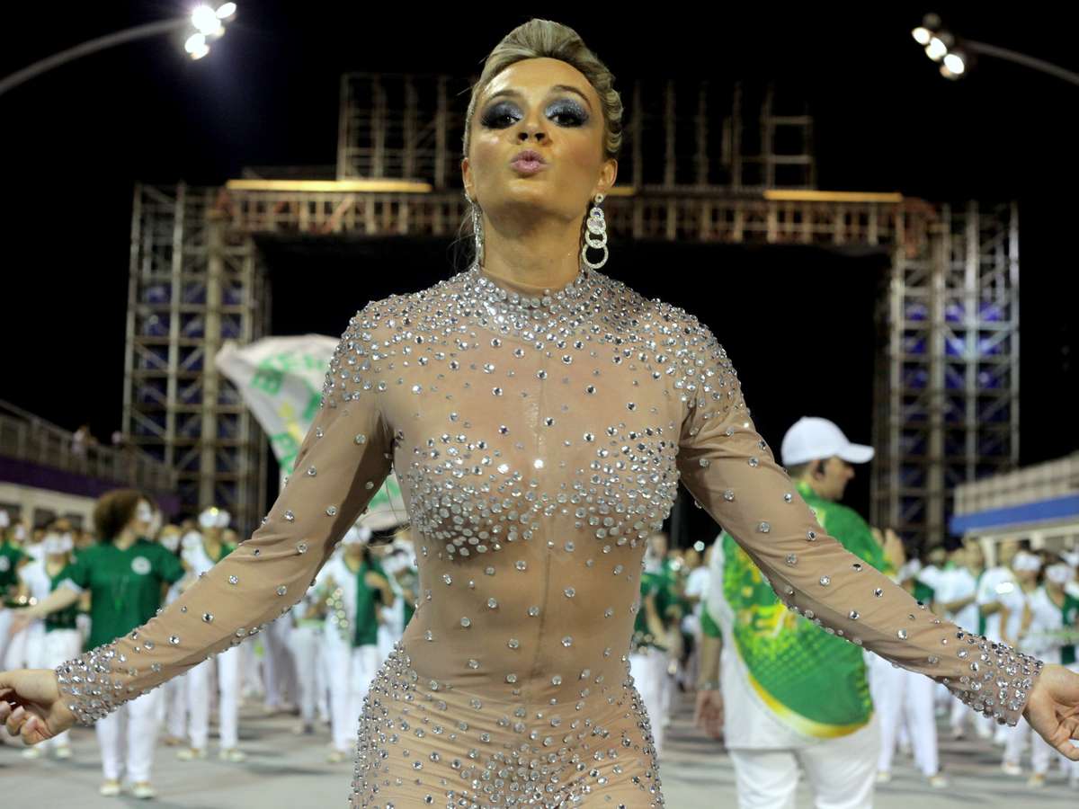 Juju Salimeni esteve no Sambódromo de São Paulo na noite dessa sexta-feira (23) para ensaiar com sua escola, a Mancha Verde. A repórter do programa Legendários, da TV Record, usou um macacão transparente para cruzar a avenida.