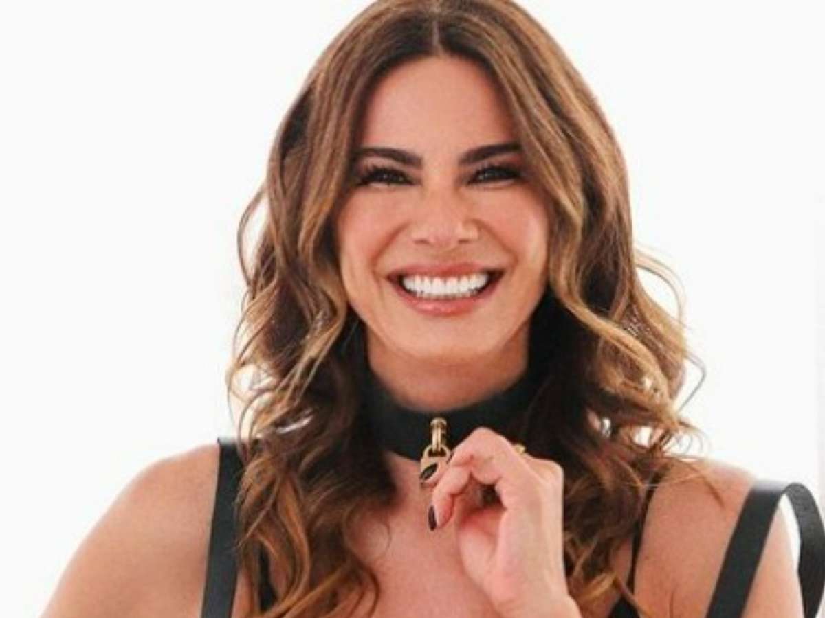Nas imagens, a apresentadora de 54 anos aparece seminua, usando uma faixa nos seios e deixando o bumbum à mostra ao usar uma meia arrastão.