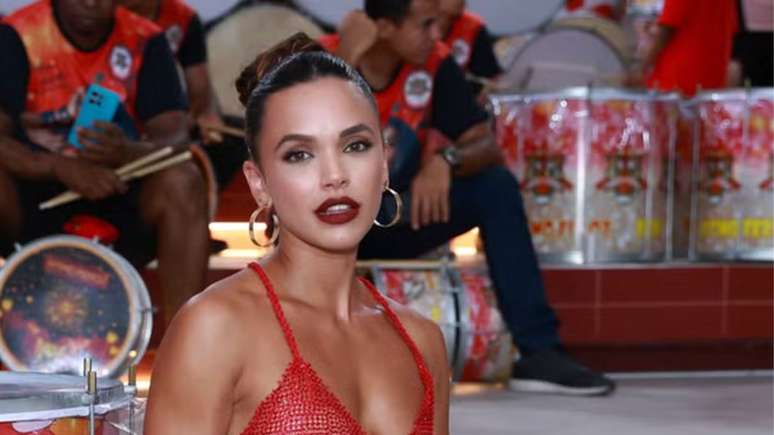 Giovana Cordeiro arasa em ensaio na escola de samba Salgueiro; atriz também é musa da Porto da Pedra há 2 anos