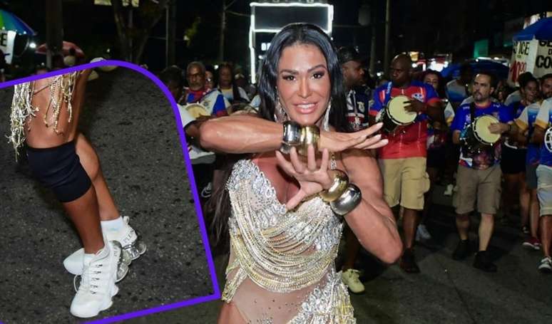Gracyanne Barbosa vem chamando atenção por usar tênis nos ensaios do carnaval 2026, que marca seu retorno à União da Ilha do Governador como rainha de bateria após seis anos. O sapato de salto alto ficou no armário após a musa fitness romper o tendão e passar por uma cirurgia no joelho em 2025 depois de se lesionar no "Dança dos Famosos".