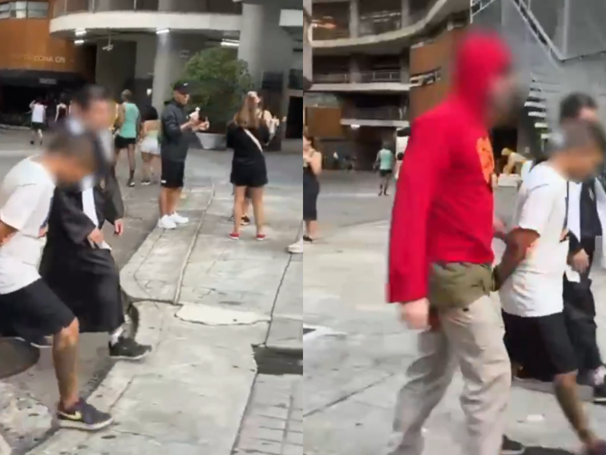 Nas imagens, é possível ver os policiais escoltando o criminoso na frente do Edifício Copan, perto de onde ocorreu a dispersão do bloco Acadêmicos do Baixo Augusta.