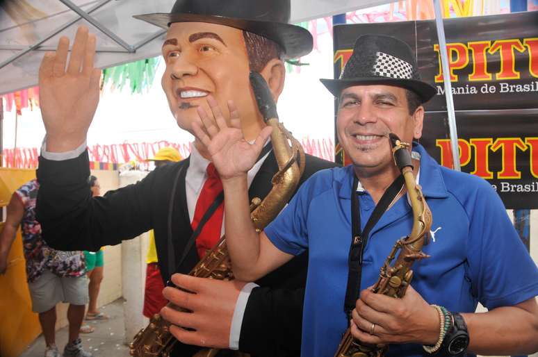 Vestido de terno preto e com um sax nas mãos, o boneco demorou cerca de um mês para ser confeccionado pelo artista plástico Silvio Botelho, “pai” de muitas outras estruturas que desfilaram na manhã.