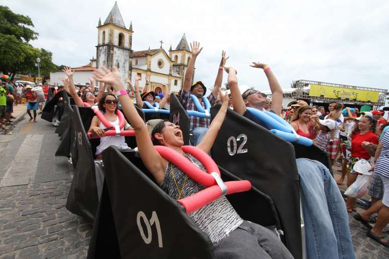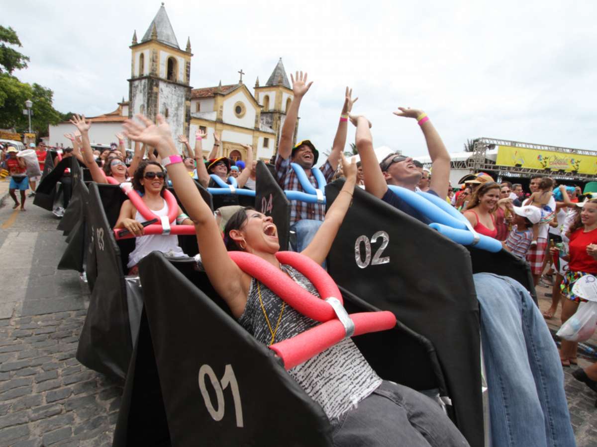 Amigos formam "montanha-russa" em fantasia inusitada em Olinda