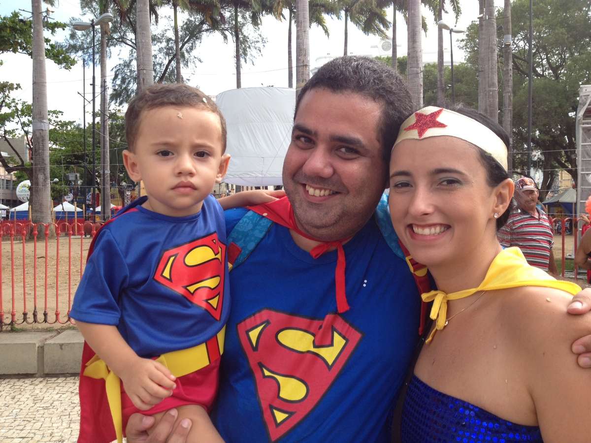 A tarde de Carnaval no Marco Zero, no Recife, foi diferente neste domingo. Se em Olinda os blocos de rua embalavam os foliões, na capital pernambucana o ambiente era bem familiar, com direito a palhaços, crianças, bruxas e até uma Super-Família. O gestor de informática Bartolomeu Melo, 36 anos, se vestiu de Super-Homem e saiu em companhia da mulher, a médica Daniele Bandeira, 34 anos, que aderiu às roupas da Mulher-Maravilha, e do filho João Gustavo, de 1 ano e 10 meses de idade, também com as vestimentas do Homem de Aço.