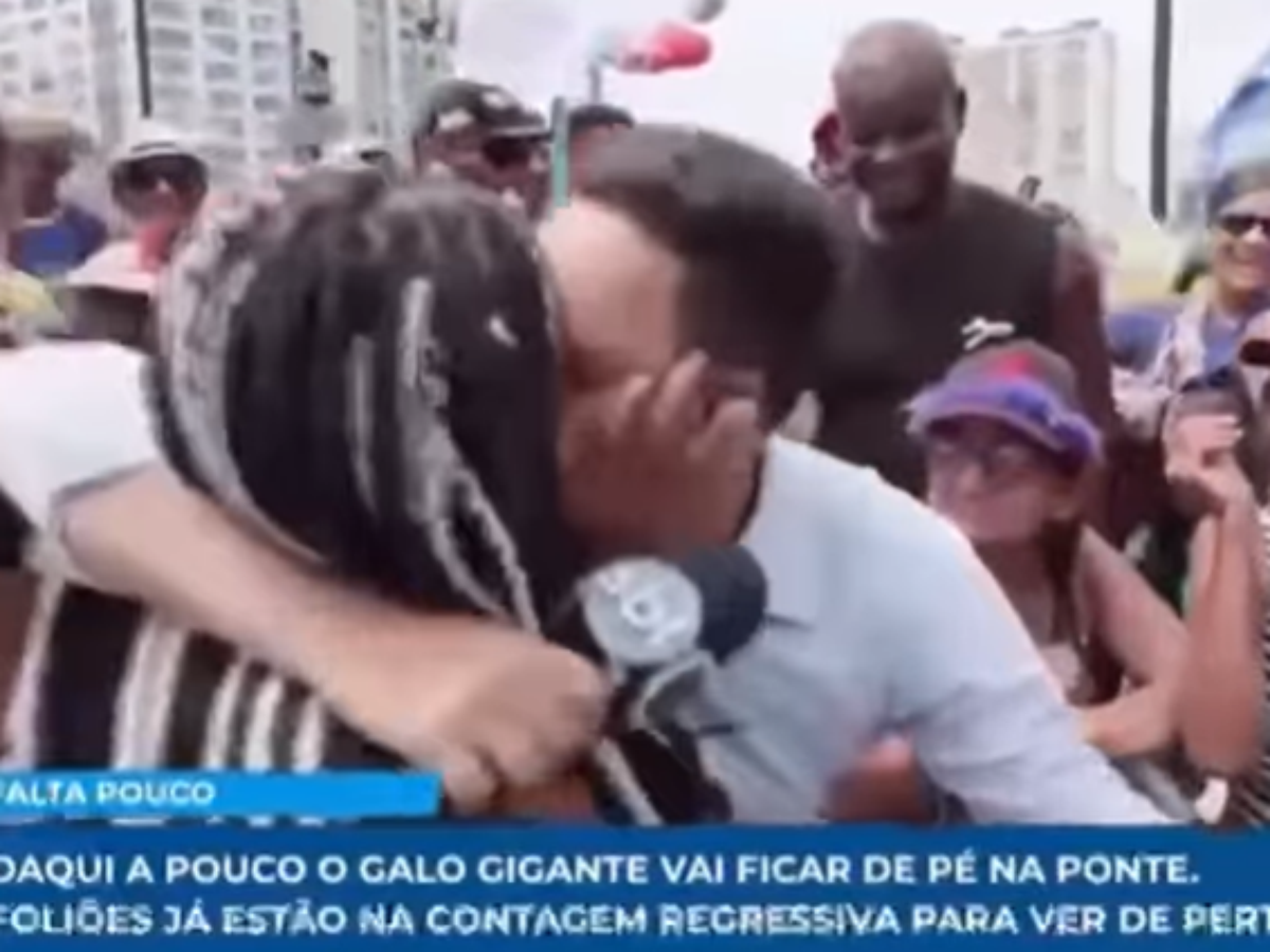 Repórter é beijado e carregado por foliã em pré-carnaval no Recife