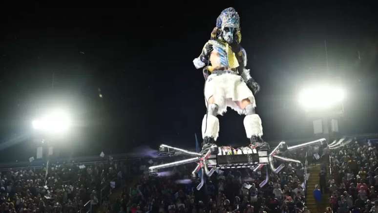 A apresentação foi um dos grandes destaques da noite, e o voo com o drone levava um componente suspenso, fazendo parte da encenação da comissão de frente. A cena foi impactante e inédita na avenida, e teve grande repercussão.