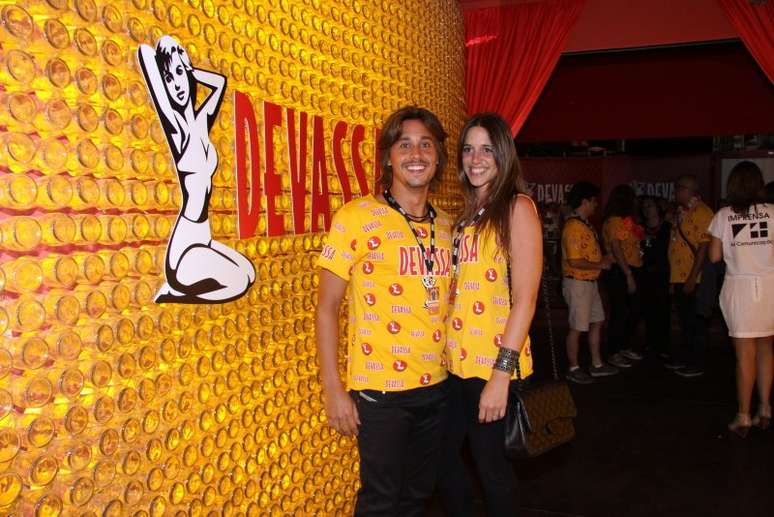 Bruno Garcia e sua companheira no camarote da Devassa, no Rio de Janeiro