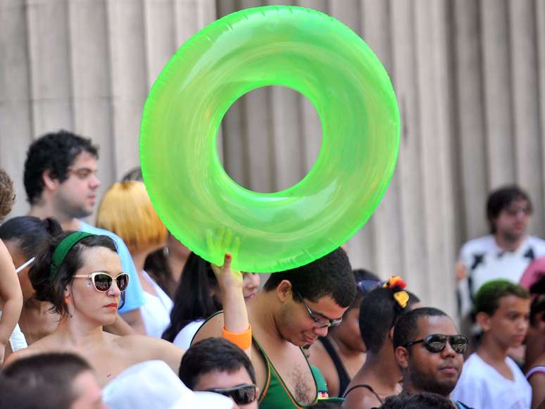 Homens fazem a festa em frente à Assembleia Legislativa do Rio de Janeiro