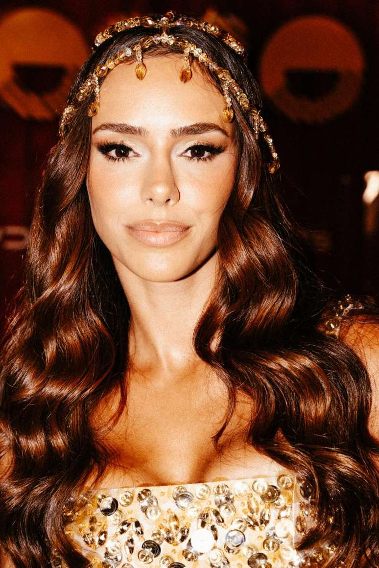 Sabrina Sato opta por look dourado para curtir 2ª noite dos desfiles no Rio