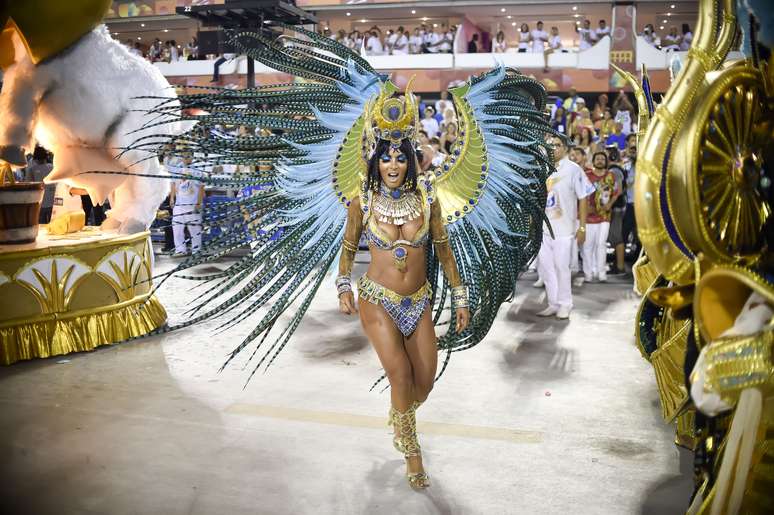 Destaque de chão da União da Ilha, escola que fechou a segunda noite de desfiles do Grupo Especial do Rio de Janeiro, na manhã desta terça-feira (17), a modelo e apresentadora Carla Prata foi responsável por representar Cleópatra, vestindo uma fantasia avaliada em R$ 45 mil.