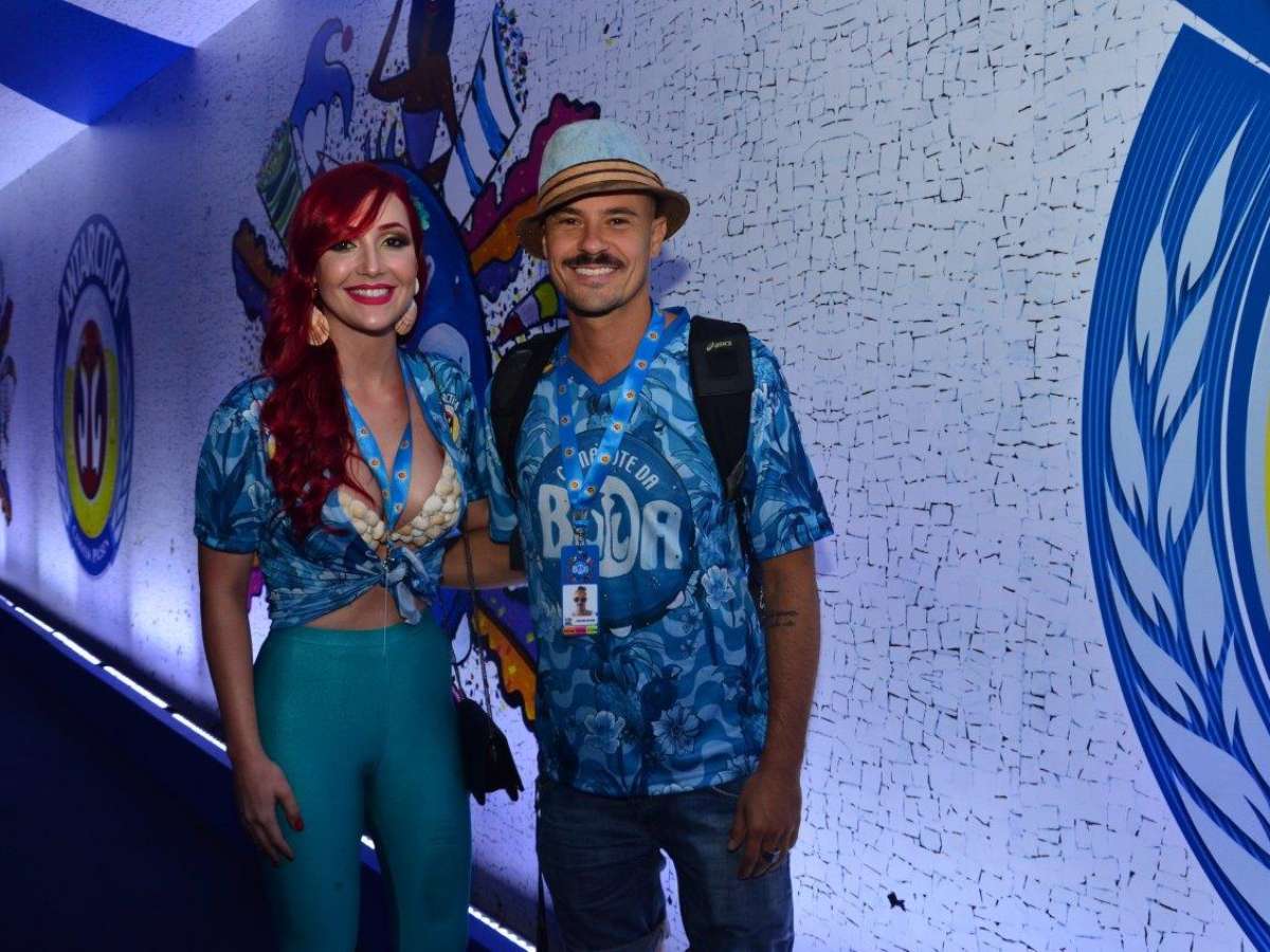 A atriz Camila Rodrigues e o marido em camarote na Sapucaí