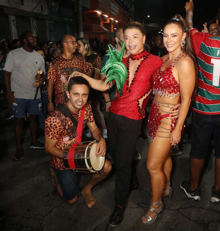 Grande Rio faz último ensaio de rua antes do Carnaval com a participação de famosos como Paolla Oliveira, Mariana Goldfarb, Mileide Miheile e David Brazil, que marcam presença no desfile em Duque de Caxias (RJ).