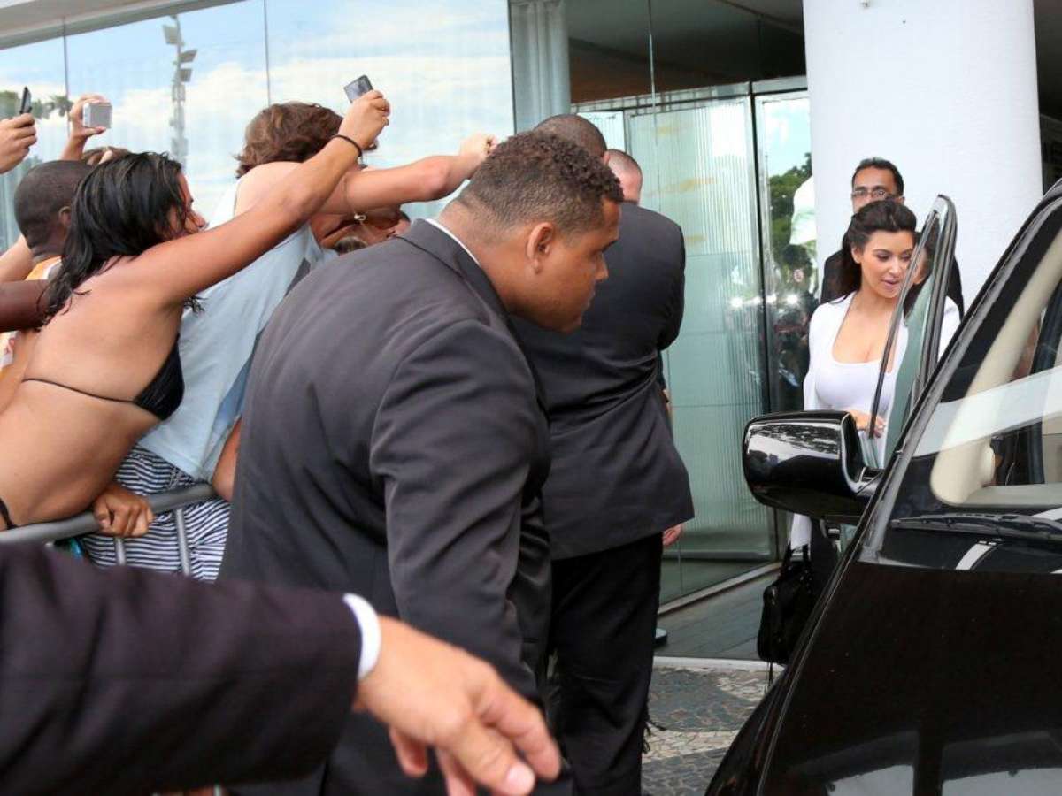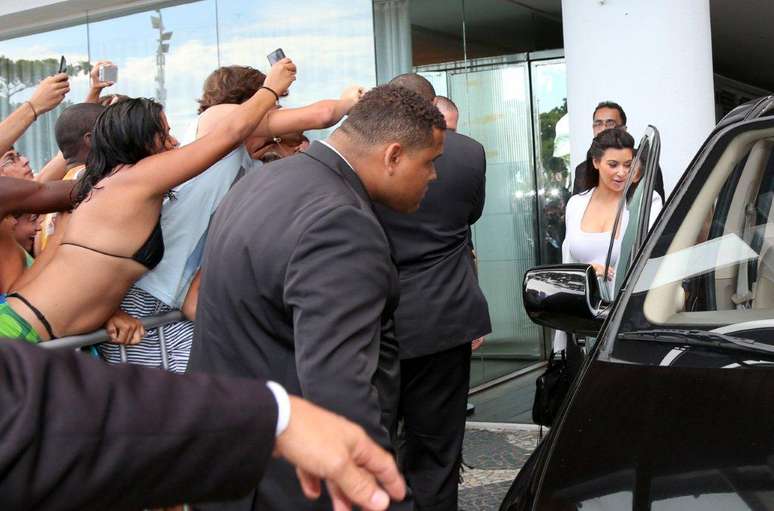 A socialite americana Kim Kardashian, que curte o Carnaval no Rio de Janeiro, atraiu a atenção ao sair sozinha do hotel onde está hospedada em Ipanema, na zona sul, nesta segunda-feira. Ela está no Brasil com o namorado, o rapper Kanye West