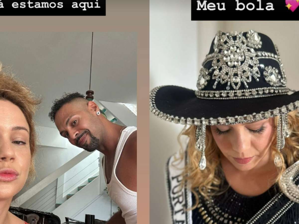 Pouco tempo depois, ela compartilhou um registro que mostra um pouco da sua fantasia, com detalhes nas cores preto e prata, e escreveu: "Meu bola".