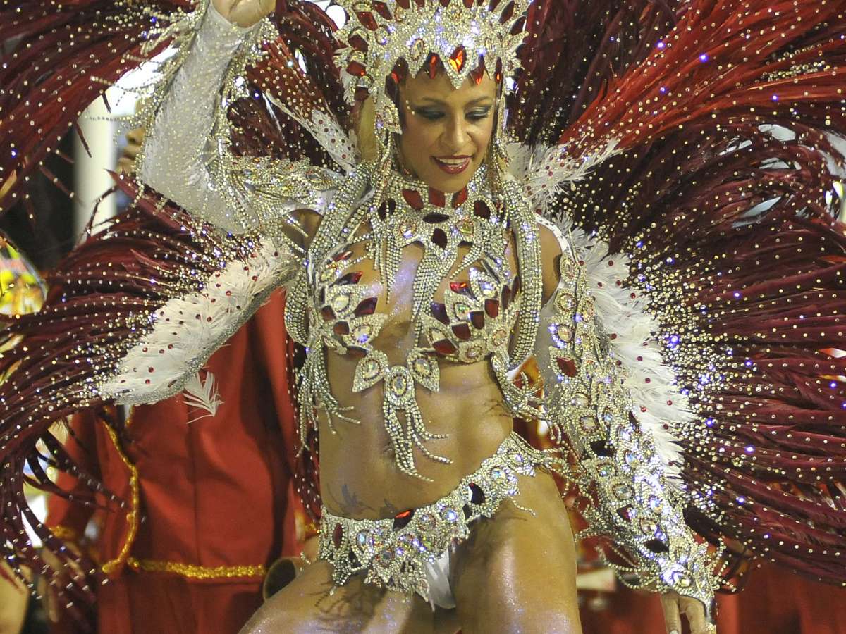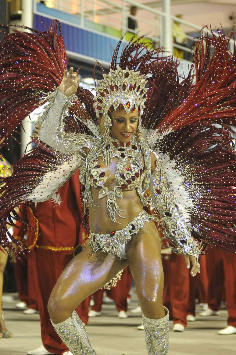 Alessandra Mattos, rainha de bateria da Porto da Pedra, desfila na Marquês de Sapucaí, no Rio de Janeiro