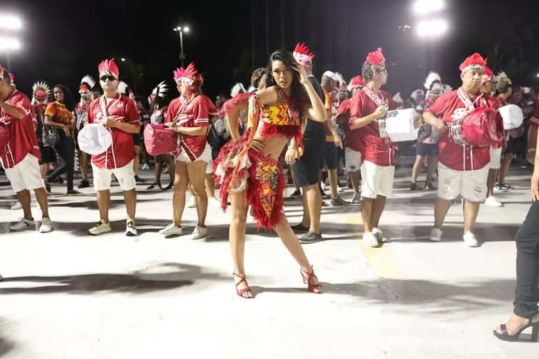 Rainha de bateria da Unidos de Bangu lamenta incêndio em fábrica de fantasias