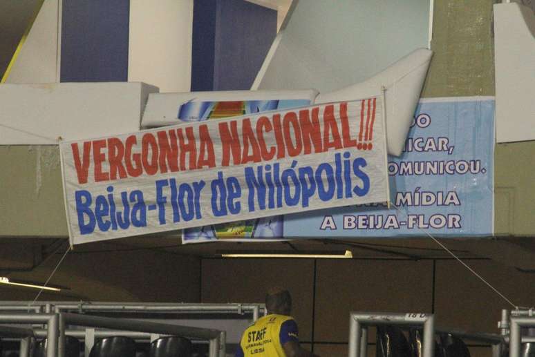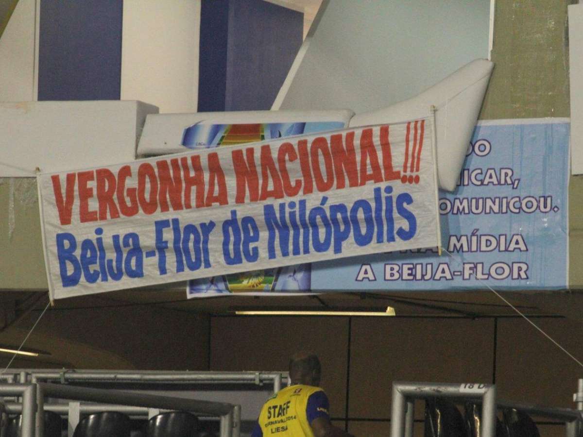 RJ: Beija-Flor pendura faixas de protesto na Sapucaí