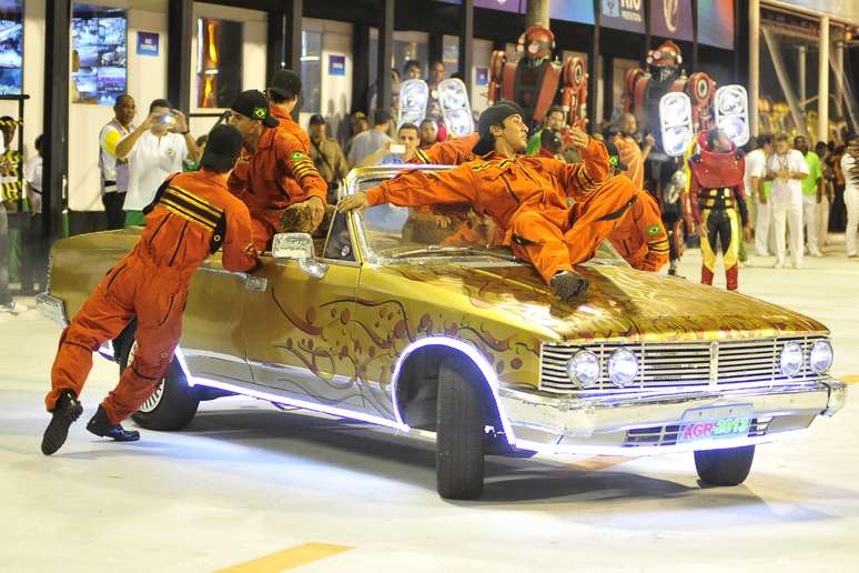 A Grande Rio foi a primeira escola a entrar na Sapucaí na noite deste sábado (16), para o Desfile das Campeãs do Carnaval do Rio de Janeiro. A escola mostrou, repleta de celebridades, o enredo "Amo o Rio e vou à luta: ouro negro sem disputaContra a injustiça em defesa do Rio", tratando do petróleo, o gás natural e a divisão dos royalties - tema que gerou polêmica no País no ano passado. Junto com Emerson Dias, intérprete oficial, a agremiação cantou: "é a mensagem taí, explorar não é destruír, se faltar vira o cáos, não posso deixar, pelo Rio eu vou lutar, um grande rio de amor sou eu, vem cá, me dá o que é meu, é meu"Foto: Dhavid Normando / Futura Press