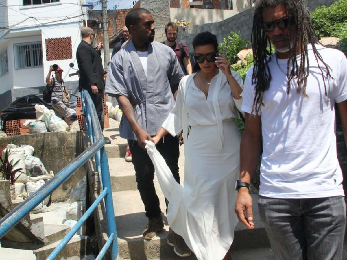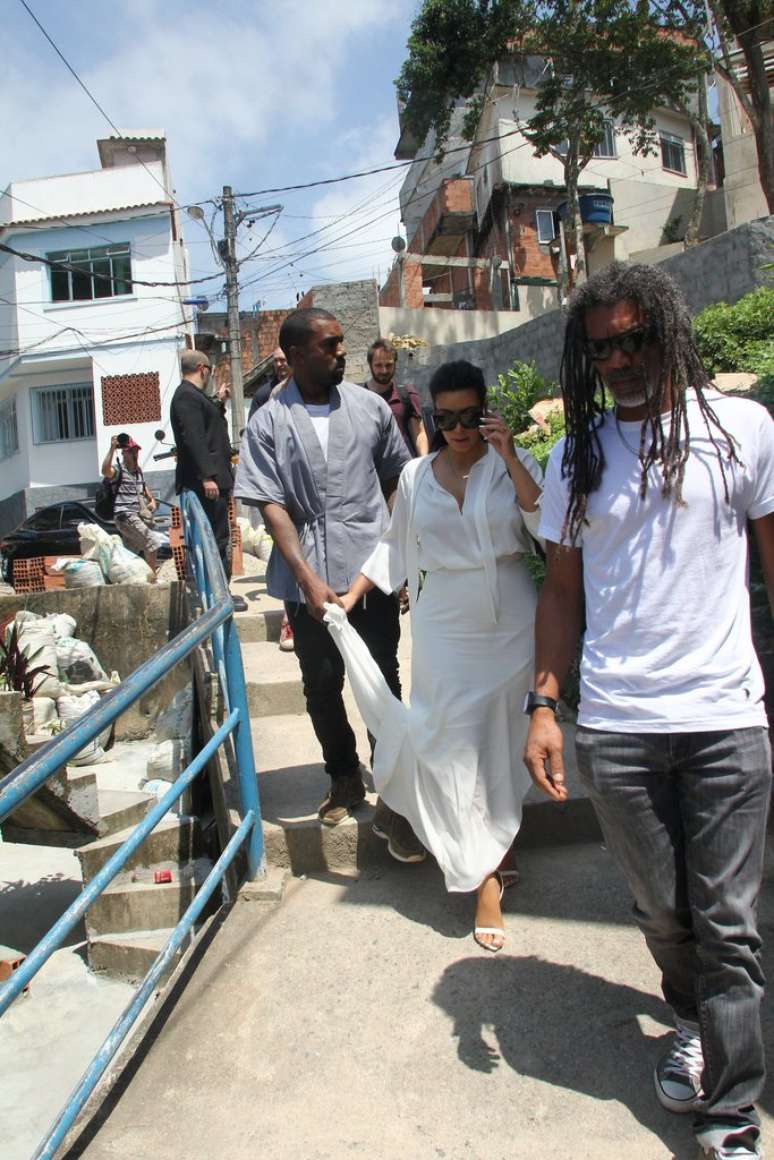 A socialite Kim Kardashian e o rapper Kanye West visitam o Vidigal, no Rio