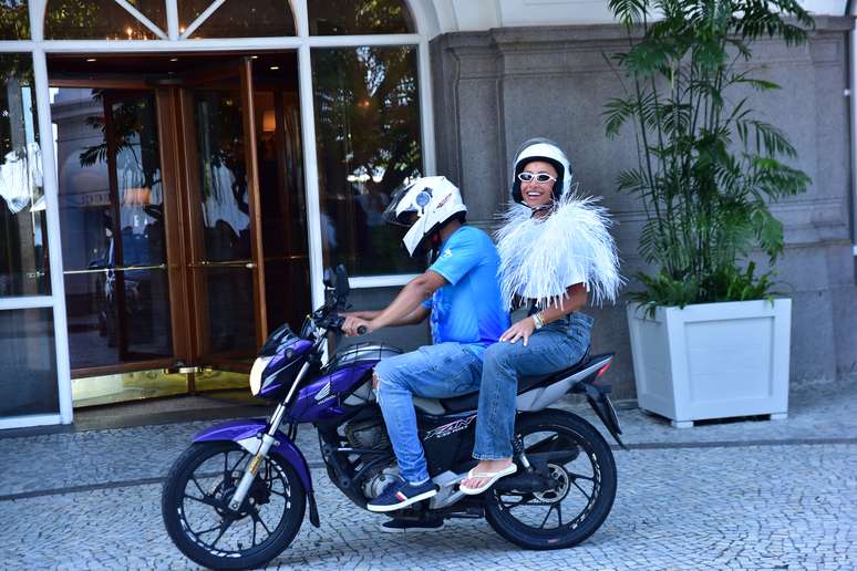 A apresentadora foi fotografada enquanto deixava o Copacabana Palace, na zona sul carioca. Ela saiu do hotel carregando um capacete e uma bolsa e subiu na garupa de uma moto.