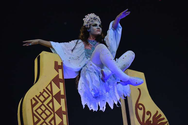 Destaque de carro alegórico mostra animação durante desfileFoto: AFP