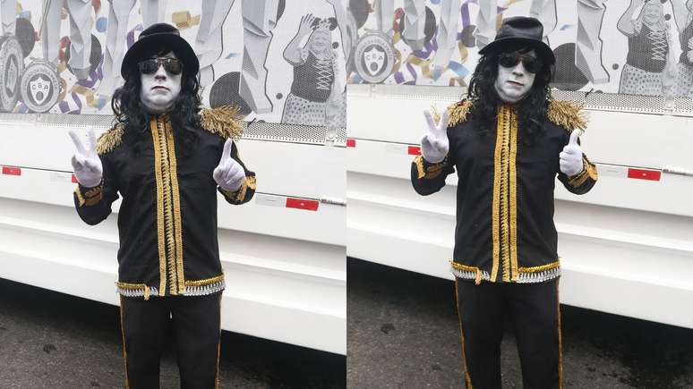Para participar da festa, ele usou uma das roupas mais características do músico, que morreu em 2009.