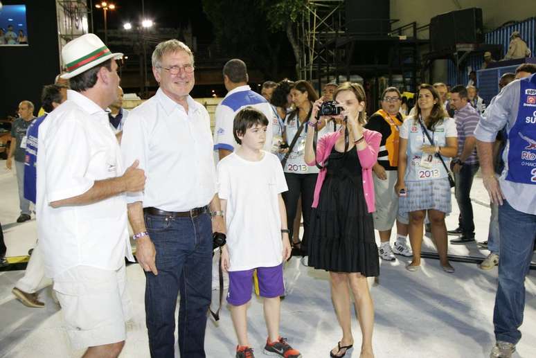 Não é apenas nos dias oficiais de folia que o Carnaval do Rio de Janeiro é cheio de celebridades. Neste sábado (16), durante o Desfile das Campeãs, na Sapucaí, o ator Harrison Ford, acompanhado da mulher Calista Flockhart, conferiu as seis melhores escolas de 2013. O ator foi ciceroneado no evento pelo prefeito do Rio de Janeiro, Eduardo Paes