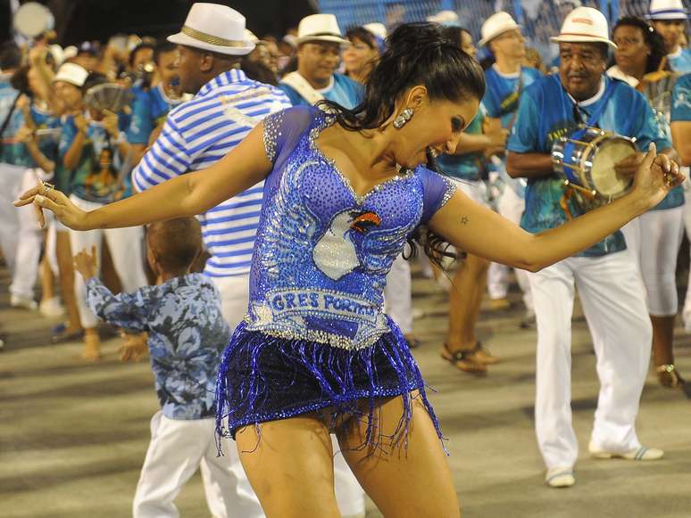 A rainha de bateria da Portela Patrícia Nery brilhou no ensaio geral da Portela para o Carnaval 2013, neste sábado (19), na Sapucaí