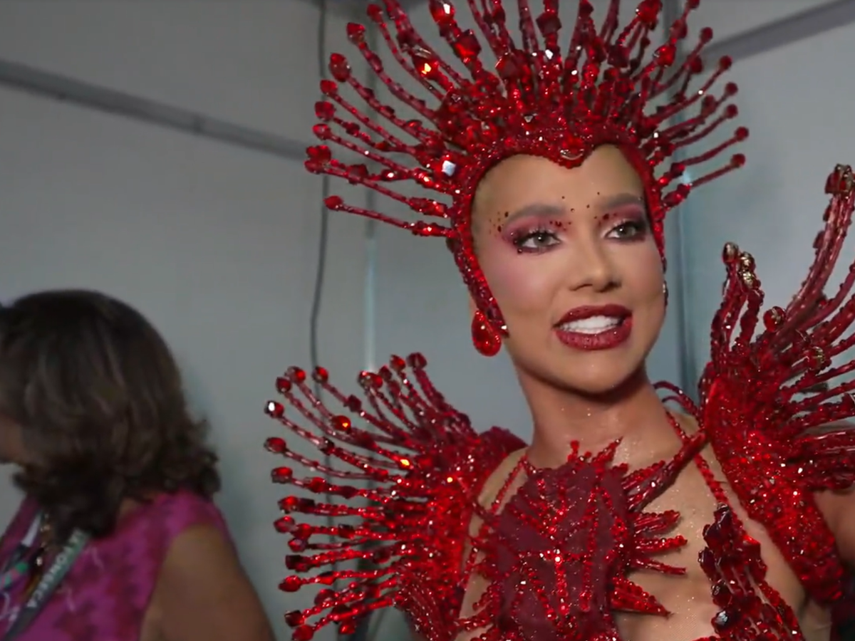 Além disso, a influenciadora digital também mandou um beijo para o namorado e comentou a homenagem que fez a ele para entrar na Sapucaí. Ela desenhou um número sete com brilhos nos dentes para representar o número da camisa que o jogador usa no Real Madrid e na Seleção Brasileira.