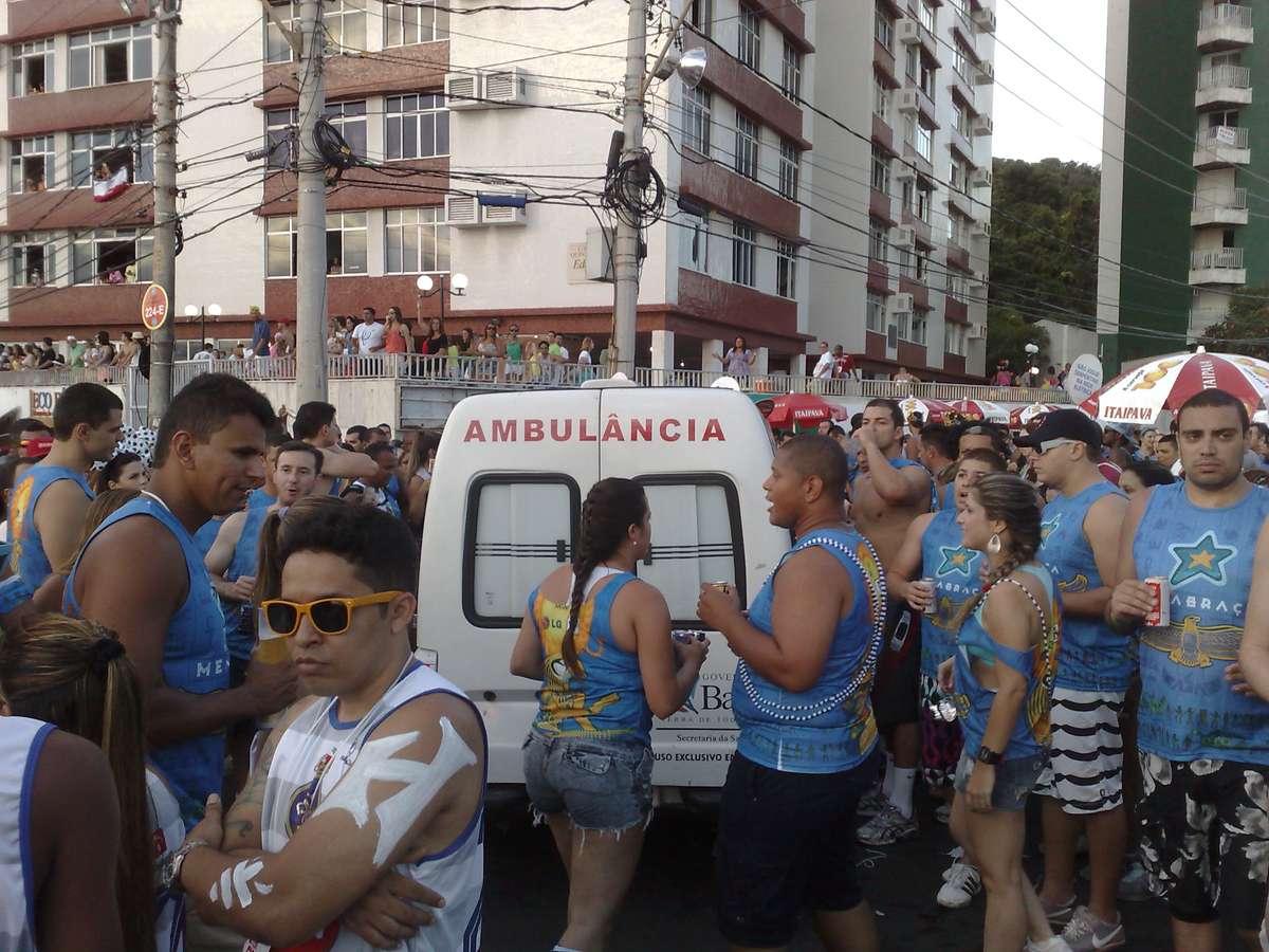 O motorista de uma ambulância do governo da Bahia se viu em apuros no final da tarde deste domingo, ao tentar trafegar pela região do Farol da Barra, ponto de concentração de foliões que acompanham os trios elétricos do circuito Dodô. Com a sirene e luzes ligadas, a ambulância tentou, em vão, acessar a Avenida Oceânica, bloqueada todos os dias a partir das 11h para a passagem dos blocos de Carnaval.