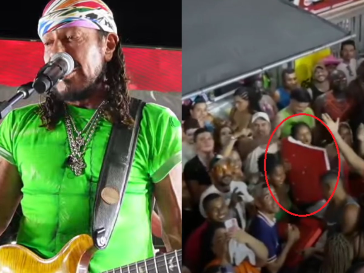 Ao ouvir a proposta, a ambulante comemorou com pulos e gritos de alegria. A reação foi acompanhada pelos foliões ao redor, que celebraram junto com a empreendedora o gesto do cantor.