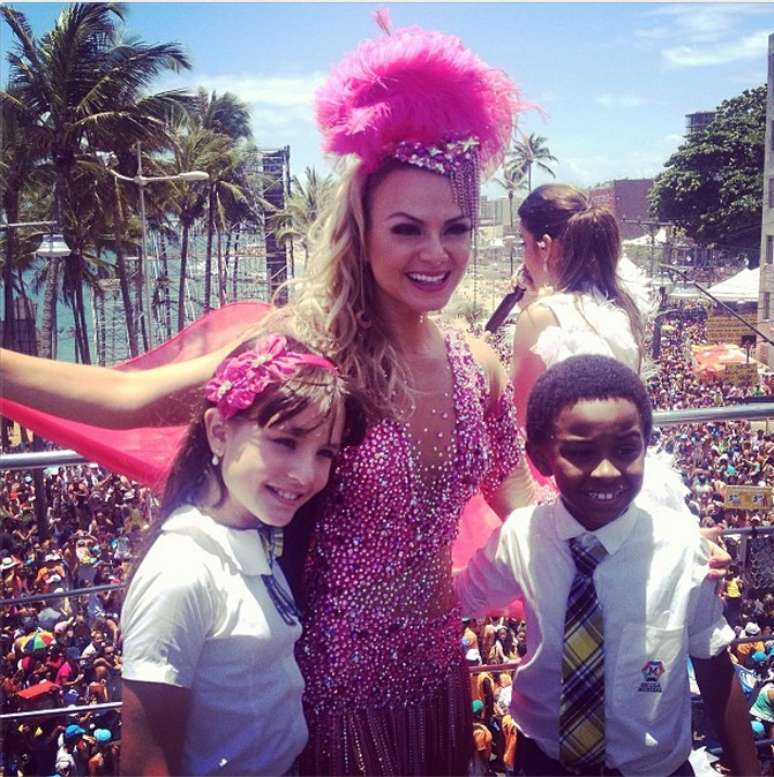 "Cirilo, se eu fosse da sua idade eu ia te paquerar muito na escola. Mas eu sou só um pouco mais velha que você, só um poquinho, não é possível”, brincou Ivete, 40 anos. Em seguida, a musa do Carnaval baiano dedicou uma música para Cirilo e Maria Joaquina, também personagem da novela Carrossel. Na manhã deste sábado (9), os atores participaram do bloco Happy, ao lado da apresentadora Eliana e da banda Babado Novo.