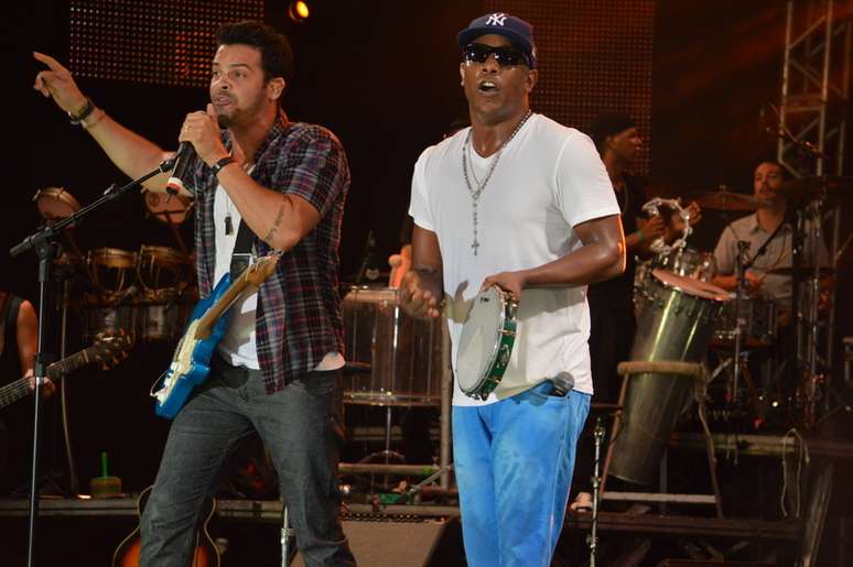 O Psirico subiu ao palco em Salvador para fazer seu ensaio para o Carnaval 2013. A banda recebeu atrações como Ivete Sangalo, Naldo, Alexandre Peixe (à esq.) e Tomate