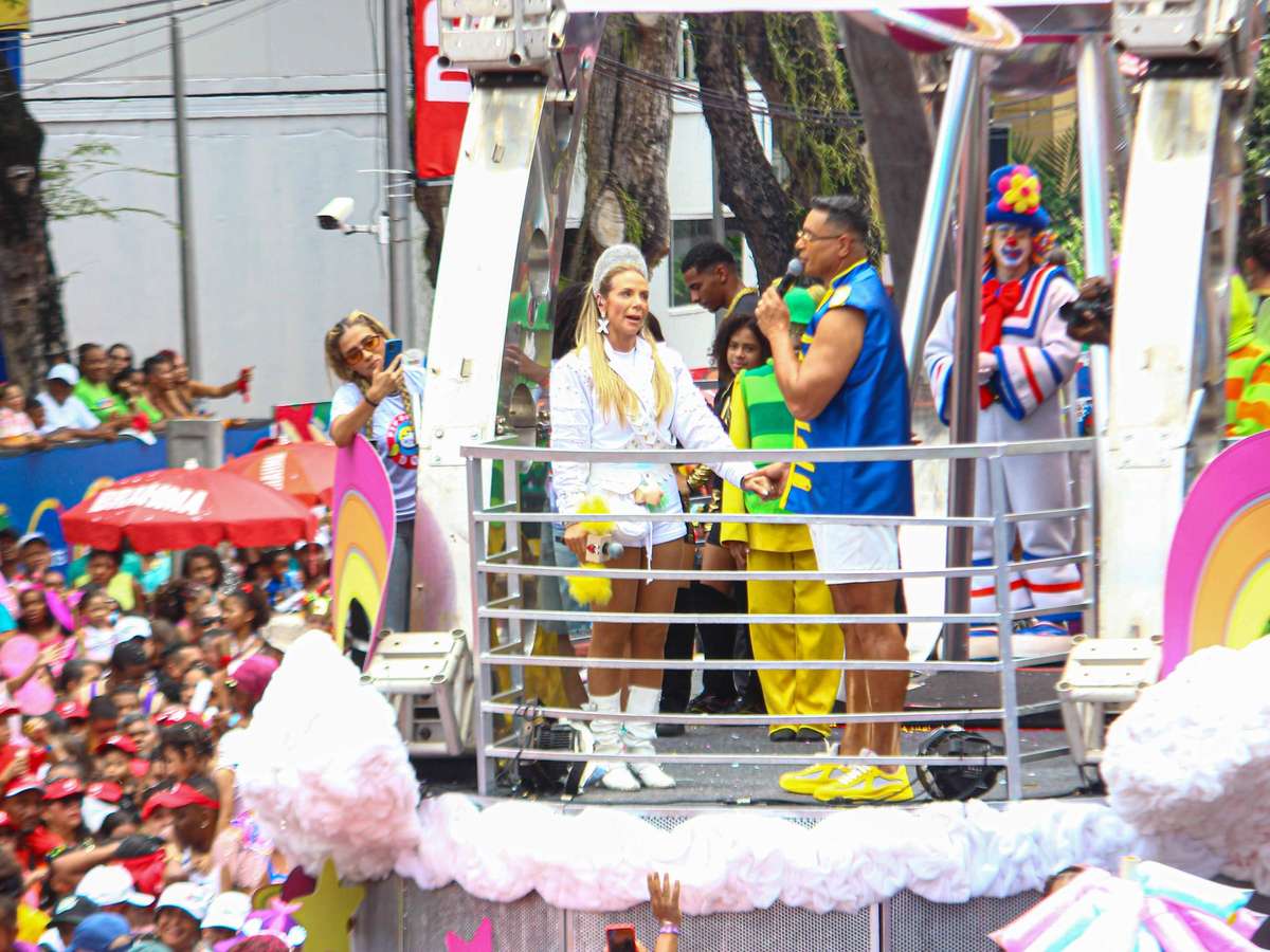 Carla Perez puxou o trio Pipoca Doce pela última vez com uma homenagem à apresentadora Xuxa Meneghel. Usando um look de paquita, a dançarina arrastou uma multidão no circuito Osmar.