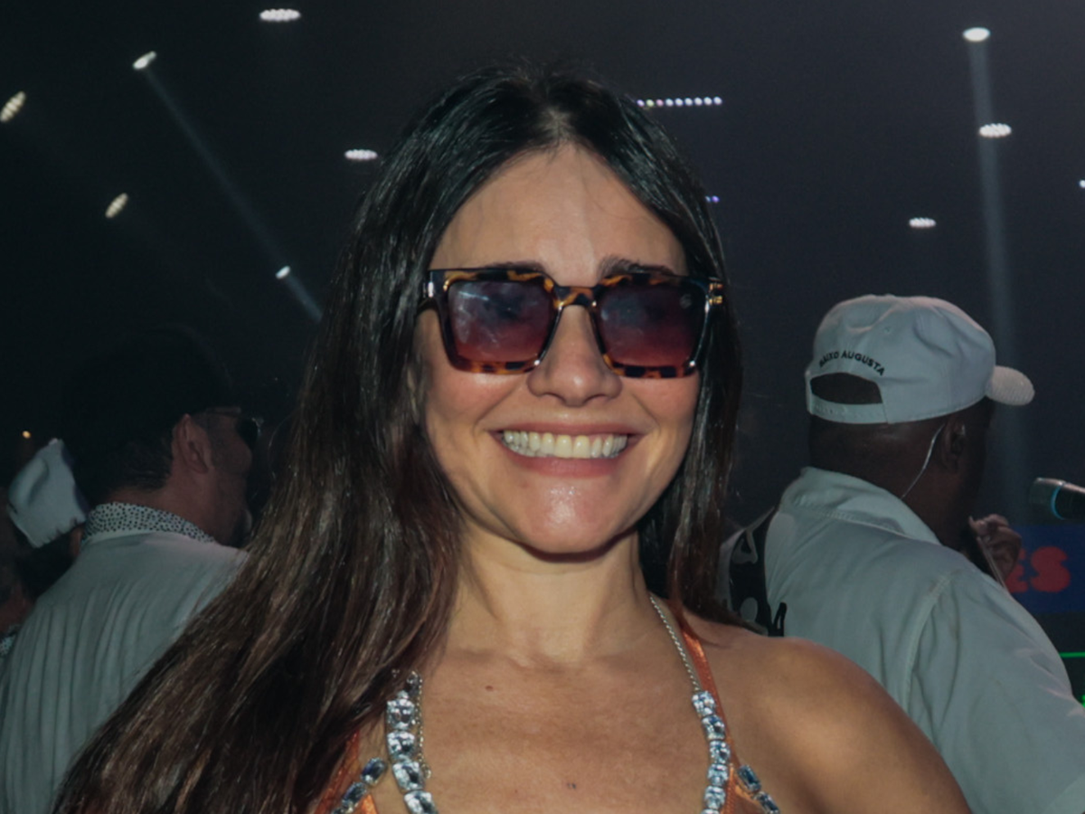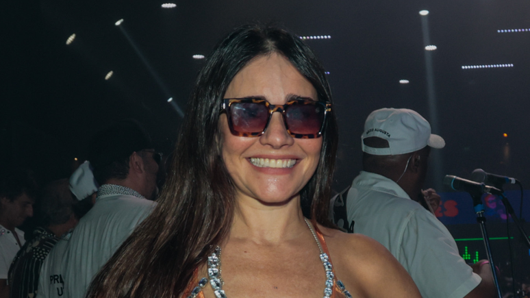 Negrini é musa oficial do bloco e esteve presente neste ensaio. A atriz apostou em um look bem carnavalesco, com um top e uma body chain de brilhos.