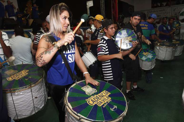 Elen Pinheiro, madrinha de bateria da Unidos de Vila Maria, também participa de ensaio