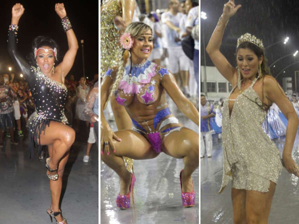 Garoou, chegou até a chover forte. Mas as beldades não se incomodoram - ou ao menos não demonstraram isso - e embelezaram a avenida do Sambódromo do Anhembi, na zona norte de São Paulo, neste domingo (16). No local que foram realizados os ensaios técnicos para o Grupo Especial do Carnaval 2014 com as escolas de samba Dragões da Real, Acadêmicos do Tatuapé e Acadêmicos do Tucuruvi