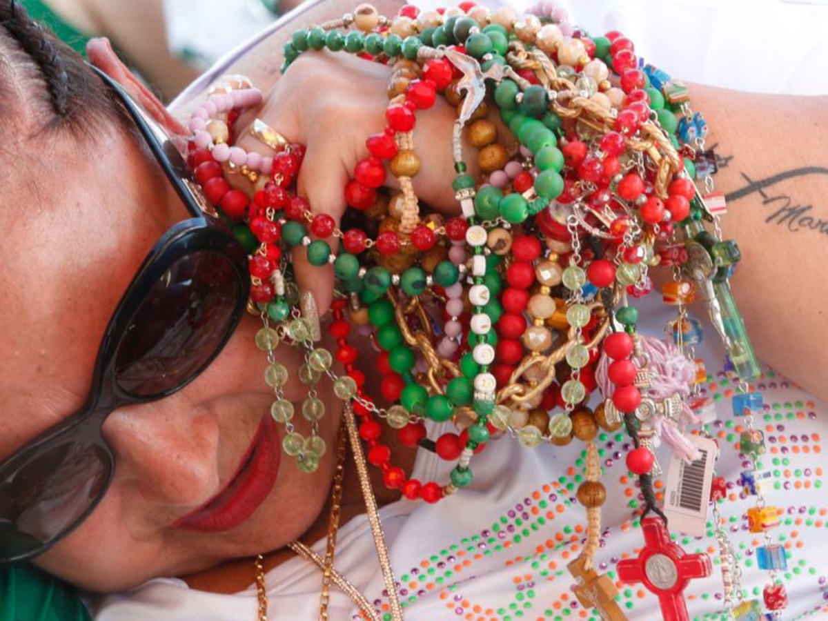 “Uma vez eu fui pra Fátima e jantando em um restaurante lá em Portugal uma mulher se levantou e foi até mim: ‘Moça, posso tirar uma dúvida? Você é a mulher dos terços?’. Isso é muito legal, às vezes as pessoas não sabem o meu nome, mas assimilam que sou a mulher dos terços.”