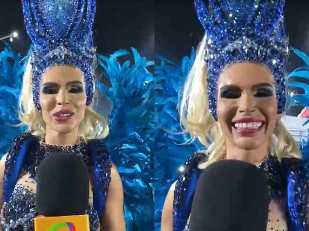 “Tudo pela escola, tudo pelo carnaval”, complementou a musa dos compositores, de 33 anos. O look todo azul, composto por penas e pedras, é do estilista Kell Mendes. “Estou aqui representando o poder, as mulheres empoderadas”, explicou ao Terra sobre a produção.