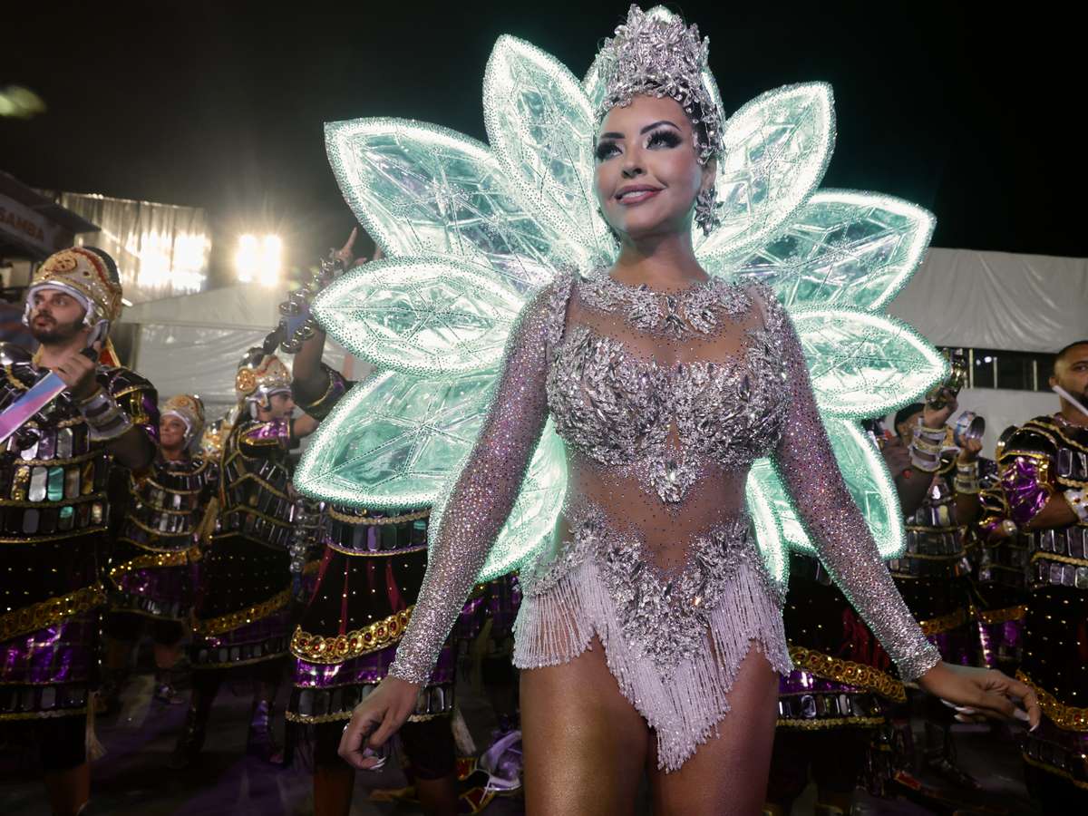Rainha de bateria da Rosas de Ouro desfila com fantasia tecnológica que exala cheiro