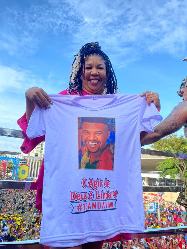 Ao som da música, o cantor convidou a mãe do brother, Elisângela Brito, que estava com uma camisa com a foto de Davi nas mãos.