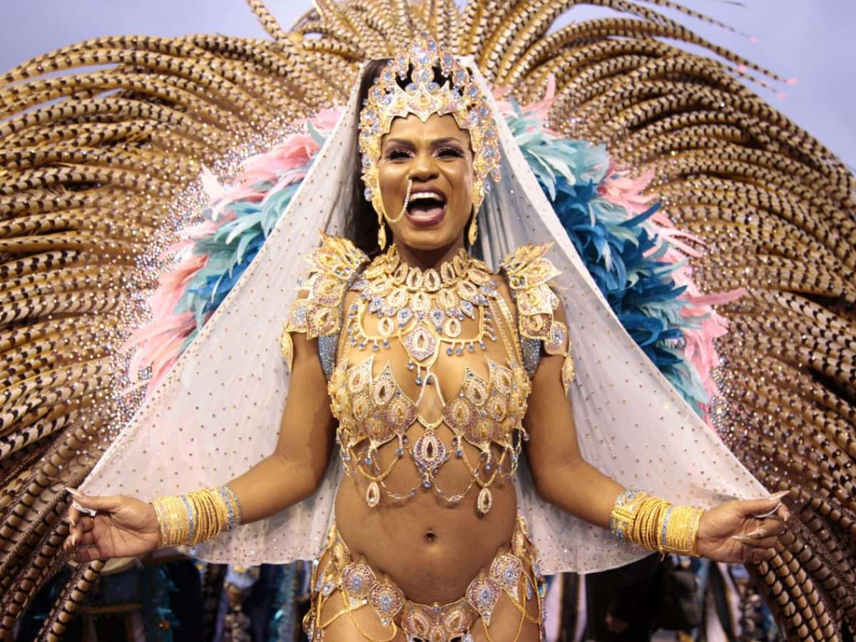 Reconhecida por figurinos criativos, a rainha de bateria da Império de Casa Verde é uma das mais esperadas no sambódromo do Anhembi