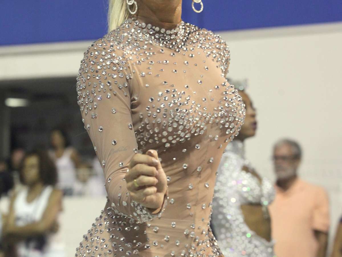 Musa da Mancha Verde, de São Paulo, a ex-panicat Juju Salimenie esteve no Sambódromo paulista na noite essa sexta-feira (24) para o ensaio antes do Carnaval
