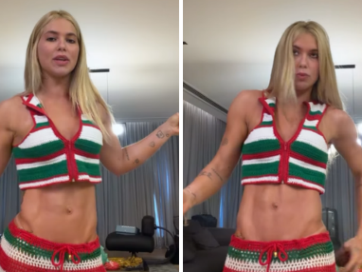 "Bom dia, bom dia. Já estou aqui de pé com meu lookinho para ir assistir à apuração com o pessoal", disse nos stories enquanto exibia o conjunto de crochê. Com abdômen de fora, ela também usou o tênis que ganhou de Vini Jr. para compor o visual.