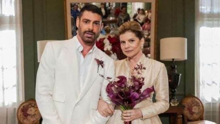 César e Odete Roitman trocam alianças em cena emocionante, mas plano de Maria de Fátima ameaça transformar a festa em tragédia