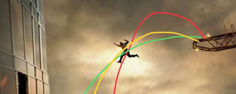 "Rascunhei umas parábolas do salto de Dwayne Johnson em Skyscraper", escreveu o escritor James Smythe, explicando as linhas verde, vermelha e amarela da imagem publicada em seu Twitter. "Qualquer que seja a sua escolha, descanse em paz, The Rock, pois você está morto agora."