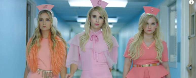 "E teve boatos que eu ainda estava na pior..." Bem na vibe Luisa Marilac, Chanel Oberlin (Emma Roberts), Chanel #3 (Billie Lourd) e Chanel #5 ( Abigail Breslin) saem do campus da faculdade e retornam como enfermeiras estilosas no primeiro teaser da nova temporada de Scream Queens.